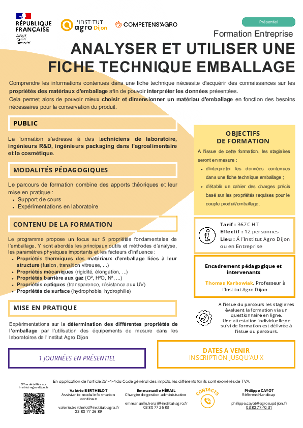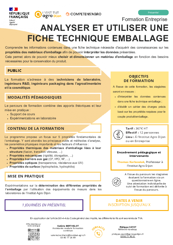 Initiant le catalogue de formations courtes sur la thématique « Emballage », Thomas Karbowiak, propose trois formations axées sur la durée de vie des produits, les propriétés des matériaux et l’innovation :