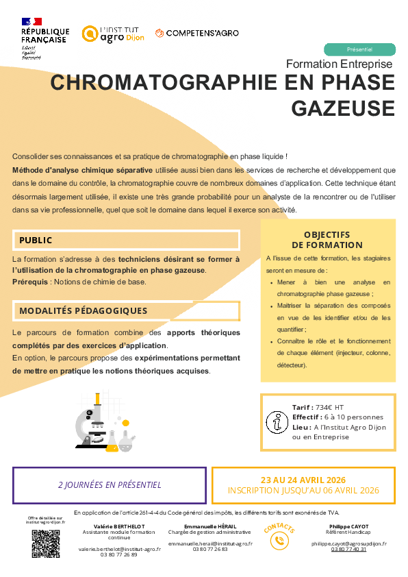 Destinée à des techniciens de laboratoire maitrisant les bases de la chimie, cette formation s’attache plus particulièrement à l’utilisation de la chromatographie en phase gazeuse.