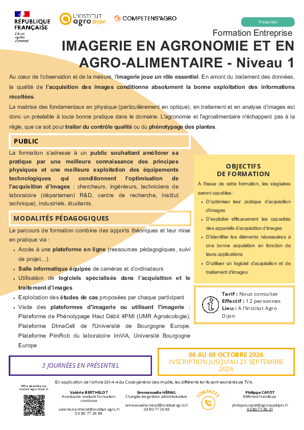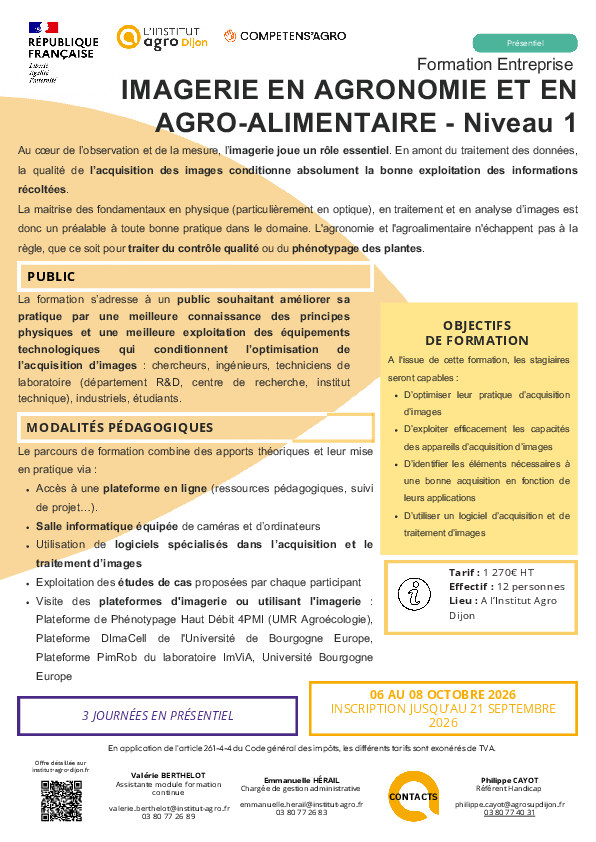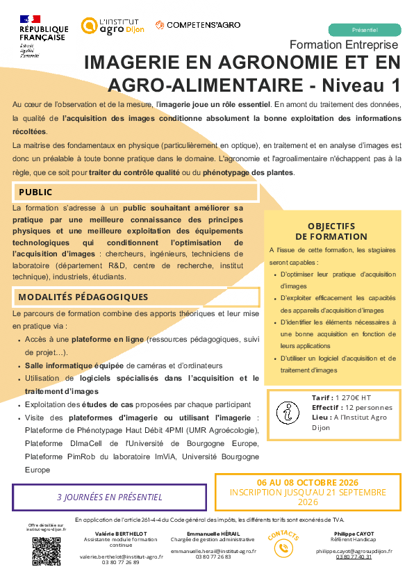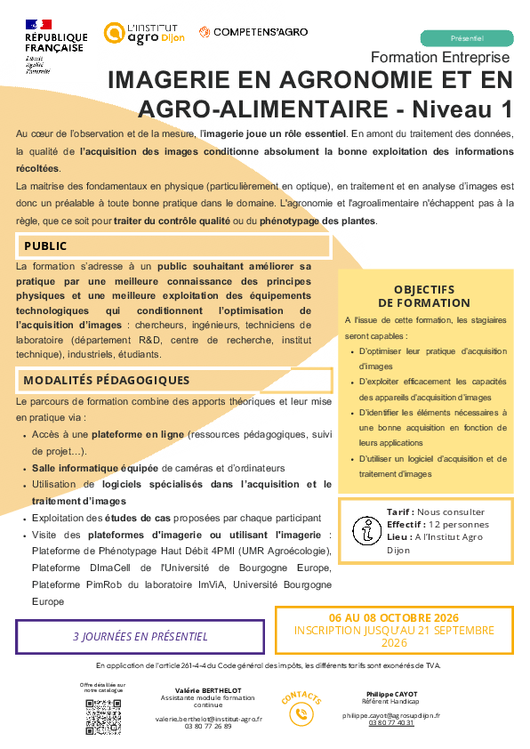 Imagerie en agronomie et en agro-alimentaire - niveau 1