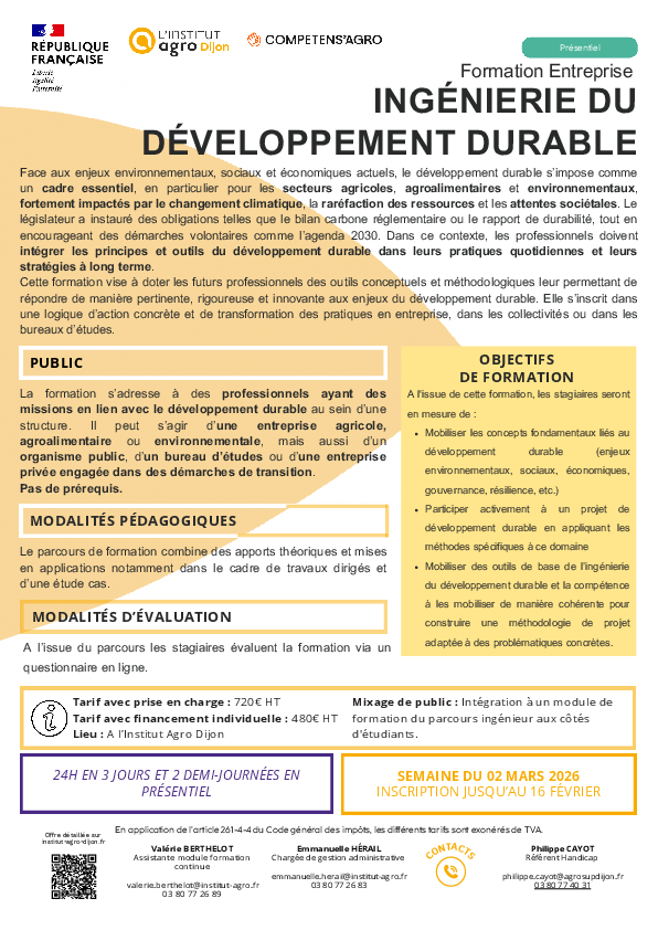 Face aux enjeux environnementaux, sociaux et économiques actuels, le développement durable s'impose comme un cadre essentiel, en particulier pour les secteurs agricoles, agroalimentaires et environnementaux, fortement impactés par le changement climatique, la raréfaction des ressources et les attentes sociétales. Le législateur a instauré des obligations telles que le bilan carbone réglementaire ou le rapport de durabilité, tout en encourageant des démarches volontaires comme l'agenda 2030.