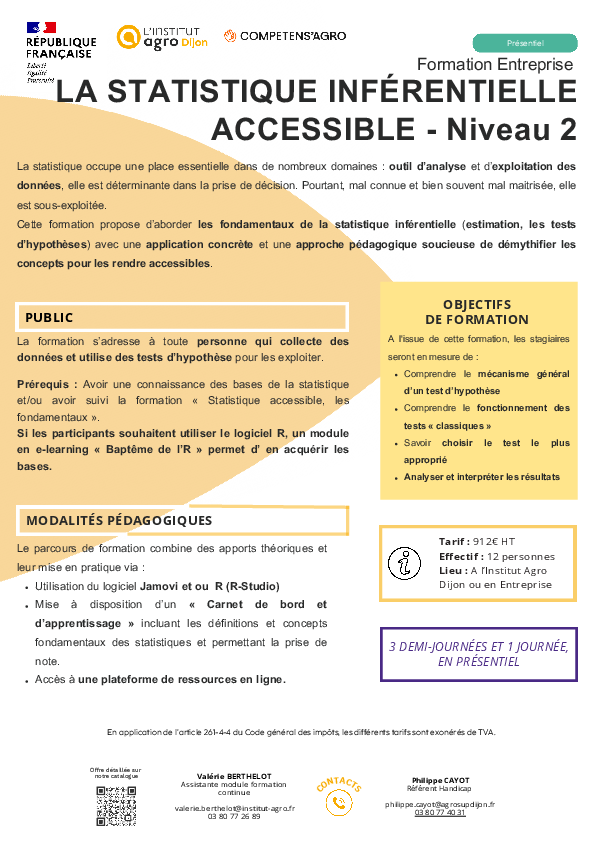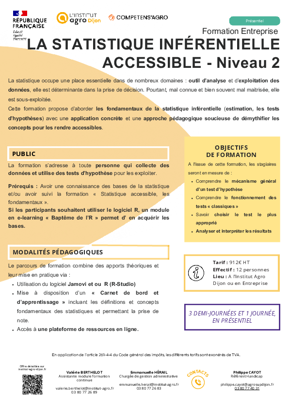 Si les participants souhaitent utiliser le logiciel R, un module en e-learning « Baptême de l’R » permet d’ en acquérir les bases.