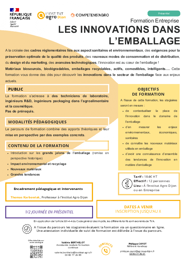 Initiant le catalogue de formations courtes sur la thématique « Emballage », Thomas Karbowiak, propose trois formations axées sur la durée de vie des produits, les propriétés des matériaux et l’innovation :