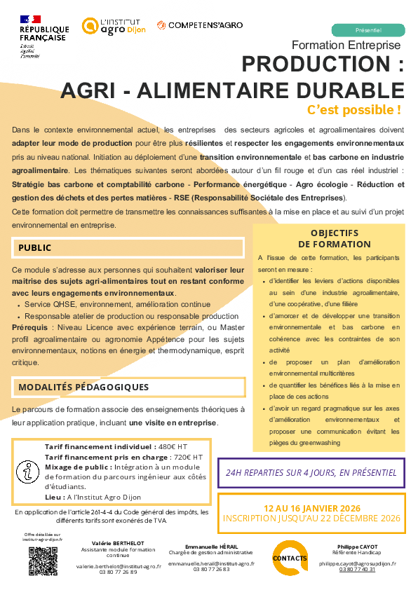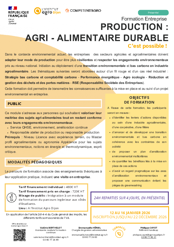 - Personnes souhaitant valoriser leur maîtrise des sujets agrialimentaires tout en restant conforme avec leurs engagements environnementaux :