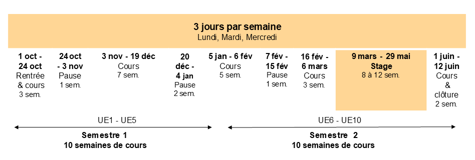 - UE5 et UE10 : Professionnalisation et stage (accompagnement : 60h)